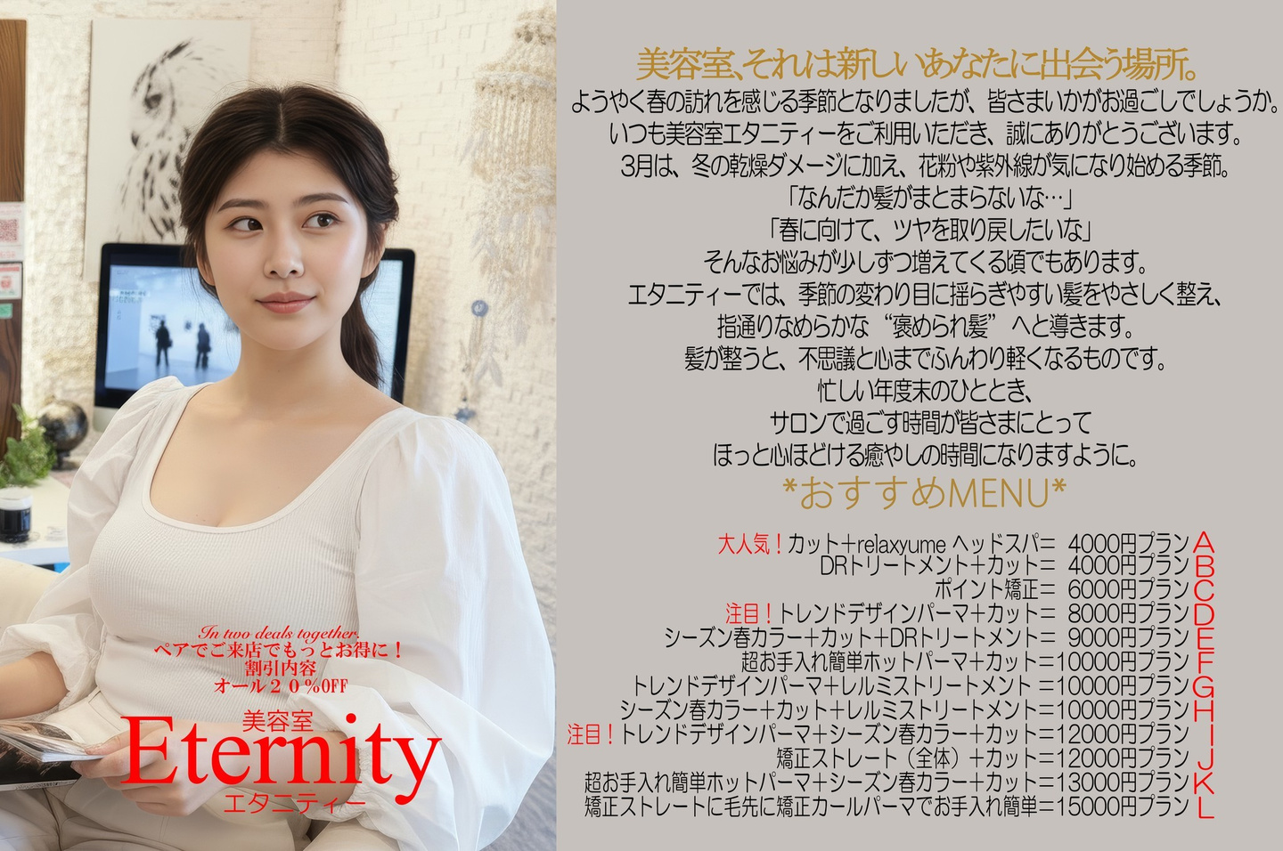 いつも美容室エタニティーをご利用いただき、誠にありがとうございます。